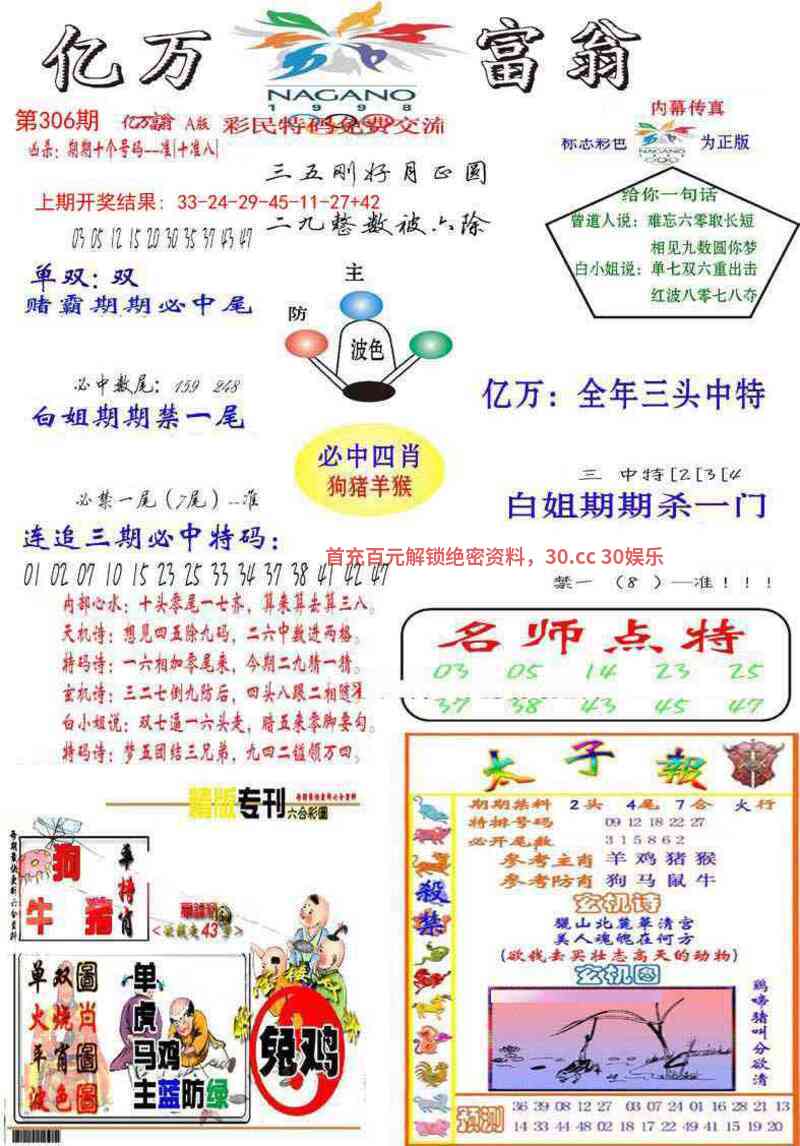| 306期:三门中特【2+3+5门】开:牛17中 |